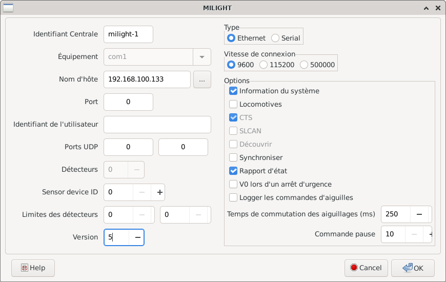 Le pont et les ampoules doivent être configurés indépendamment de Rocrail avec un navigateur WEB comme décrit dans les manuels de production.