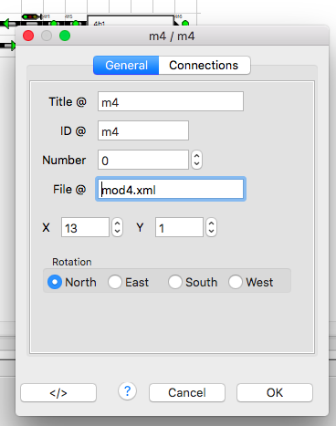 With a right mouse click on an empty module grid cell select Module properties from the popup menu and switch to the Connections tab: