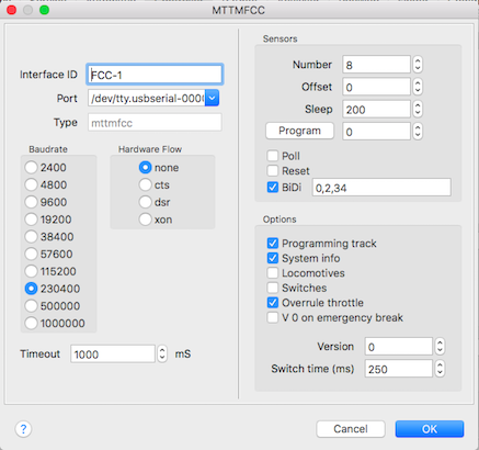 Occupancy detectors and other D & H modules can be programmed via the FCC using St-Train. Each occupancy detector is programmed to its own Sx address.