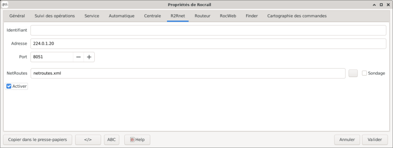 Le fichier rocrail.ini a besoin d'être étendu avec un nœud r2rnet: