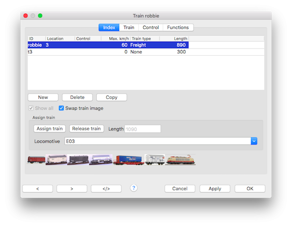 In case this dialog is used to assign a train to a loco only the train in the same block as the locomotive is listed.