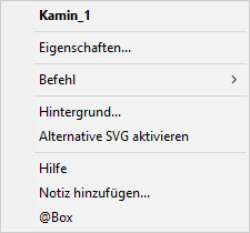 Im Untermenü können Befehle "Ein" (grün) und "Aus" (rot) an das Ausgangs-Objekt gesendet werden.