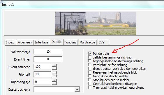 markeer de loc als pendeltrein