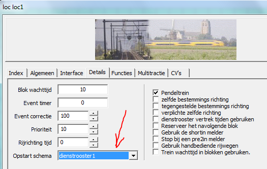 ken het dienstrooster toe aan de gewenste loc