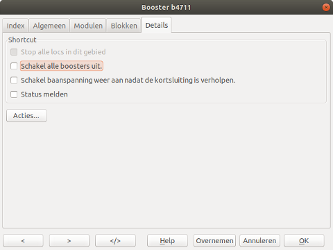Voeg hier de naam of namen toe van de binnen rocrail gedefinieerde modules die door de betreffende booster worden gevoed.