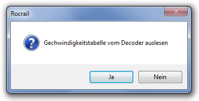 Mit Nein beantworten, wenn das Einstellen einer Geschwindigkeitskurve ohne vorheriges Auslesen aller 28 CV's (kann sehr lange dauern) gewünscht wird.