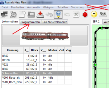 . . . er ist im Lok-Bedienfeld die Registerkarte "Programmieren"
