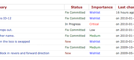 I bug devono essere segnalati su launchpad in seguito alla loro discussione sul forum di supporto di Rocrail: