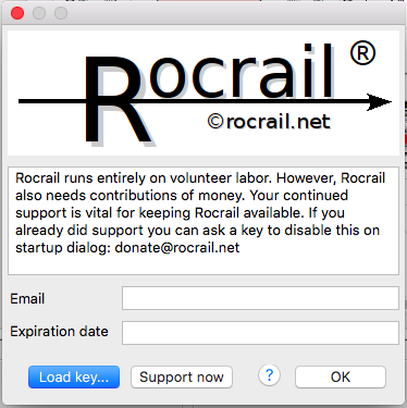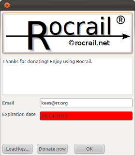 Certains clients mobile de Rocrail, à l'exception des iPhone/iPad, recevront un message de soutien si aucune clé valide n'est disponible sur le serveur et s'arrêteront.