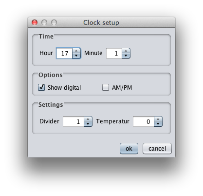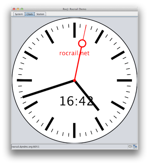 - Die Uhr wird von dem Rocrail-Server synchronisiert, mit dem RocJ verbunden ist
