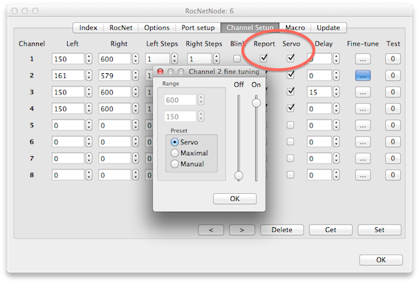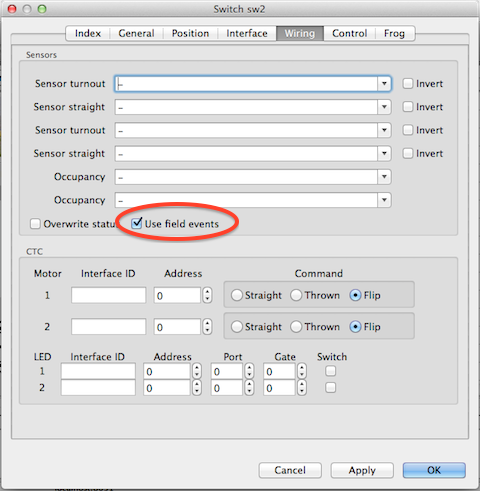 | Only set Use field events for this servo controlled switch. | The Channel Report option must be activated for this functionality. |