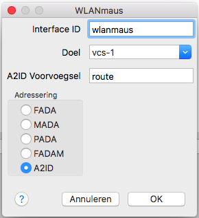 Rijwegen, Wissels, Signalen, Uitgangen, Draaischijven en FiddleYard's hebben een optioneel nummer welke gebruikt kan worden voor het omzetten van een wissel adres, genereerd door de WLANmaus, in combinatie met A2ID.