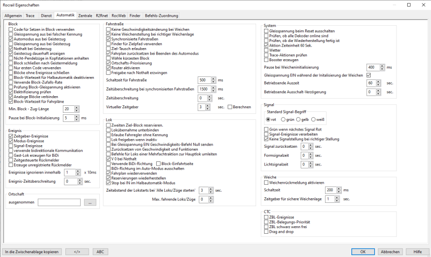 Rocrail Eigenschaften Registerkarte 'Automatik'