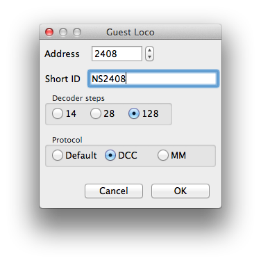 The guest loco will appear in the loco table and can be controlled as a normal loco.