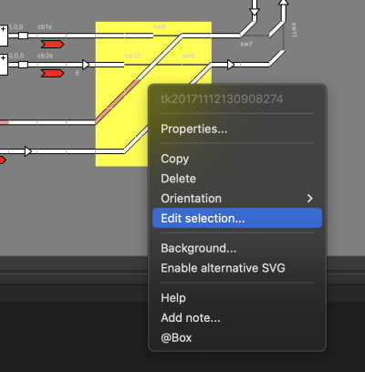 - Click the right mouse button on one of the selected objects and select "Edit selection" in the popup menu.