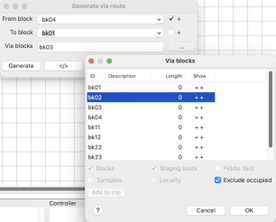 Hint: as an additional feature the field "Via Blocks" can be left empty to generate a route from one block to a next block.