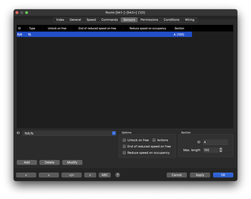 The route can only be used if all listed sensors have reported "free".