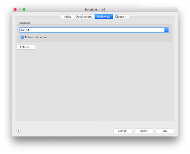 Follow-up schedules are executed (after completion of repetitions - recycle) on reaching the last destination of the original schedule.