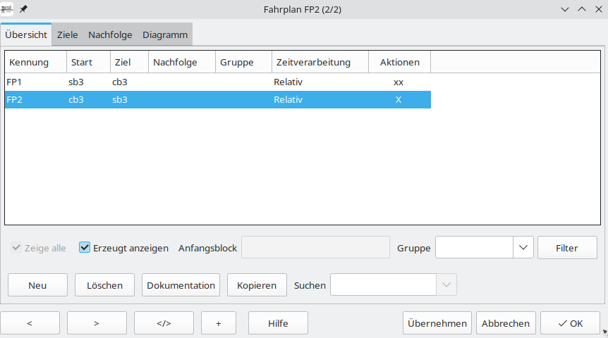 Es wird eine Kopie des markierten Fahrplans erzeugt. Zur Unterscheidung vom Original erhält die Kennung den Zusatz " (copy)".