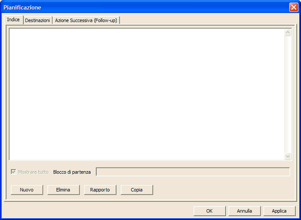 Selezionando questa opzione tutte le pianificazioni saranno mostrate senza il filtro del blocco di partenza.