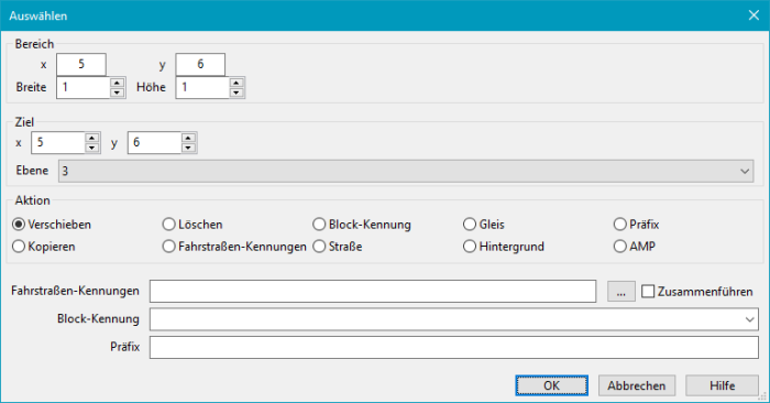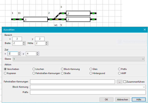 Durch die Auswahl einer anderen Ebene kann auch auf eine andere Gleisplan-Registerkarte verschoben oder dort hin kopiert werden.