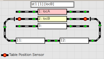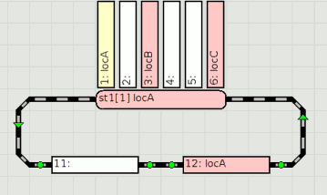 Alternative view of a Fiddle Yard without position sensors and hidden block sensors. The length of the symbol is calculated by the NrTracks attribute.