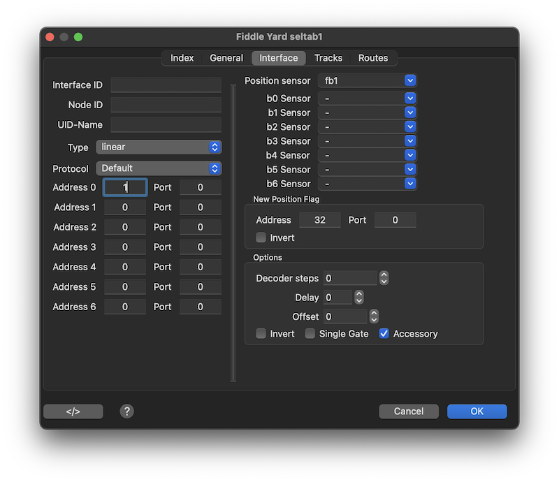 If more than one command station is used, then the command station that is responsible for controlling the decoder is specified in this field. The "Interface identifier" field can remain empty if the object is connected to the first command station (first 'digint' in rocrail.ini) from the list of command stations.
