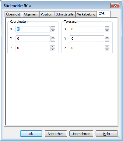 Rückmelder-Dialog Registerkarte 'GPS'.
