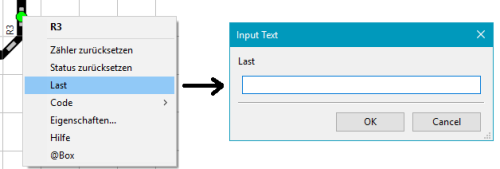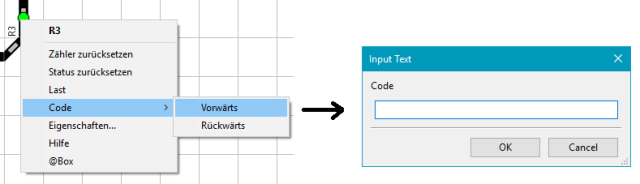Diese Auswahl simuliert die BiDi-Richtung / Logische Richtung der Lok und öffnet den Eingabe-Dialog für den Code.