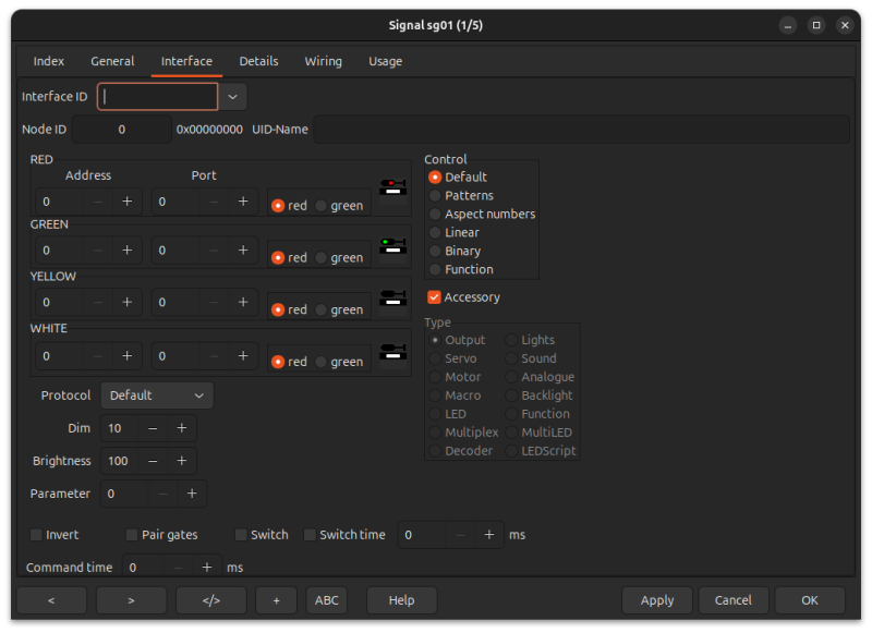 If more than one command station is used, then the command station that is responsible for controlling the signal-decoder is specified in this field. The "Interface identifier" field can remain empty if the object is connected to the first command station (first 'digint' in rocrail.ini) from the list of command stations.