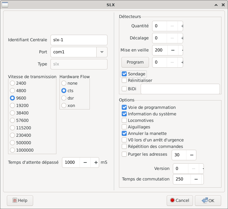 Vérifier le manuel de la centrale numérique SX pour le réglage correct. La plupart des centrales numériques utilisent la vitesse de 9600 par défaut.