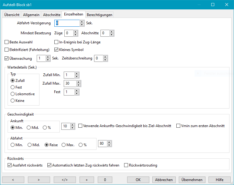 Achtung: Wenn diese Option aktiv ist und sich keine andere Lok im Aufstellblock befindet, wird die Wartezeit ignoriert.