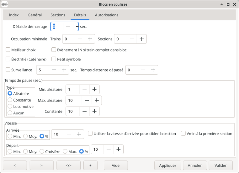 Note: Avec cette option active le temps d'attente sera ignoré si aucune autre locomotives sont dans le bloc de coulisse.
