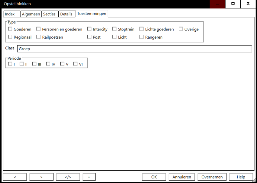 Specificeert welke treintypes zijn toegestaan. Alles is toegestaan als er geen treintype is geselecteerd.