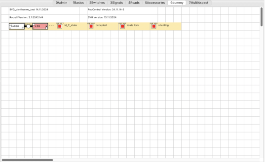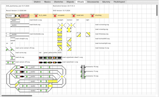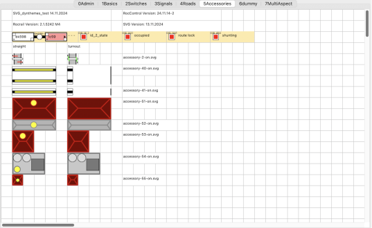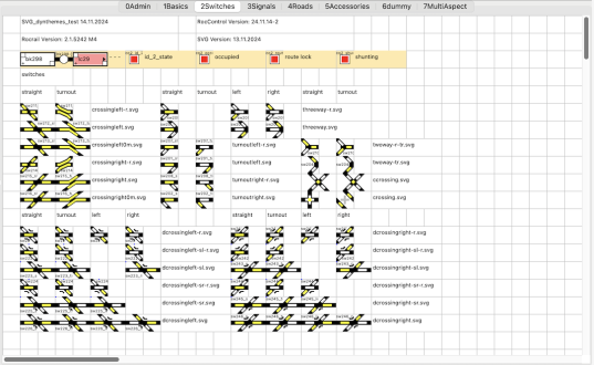 To test the RocControl software dynamic SVG symbols had to be constructed. All single test Rocrail plans were now brought together inside this Rocrail plan