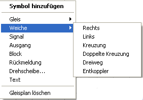 Rocrail bietet über das Kontextmenu die folgenden Weichentypen an: