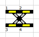 | Kreuzung (ohne Motor/Spule) mit Option Rechteckig: 90º-Weiche, die links/rechts-Option hat keinen Einfluss auf die Darstellung. | |