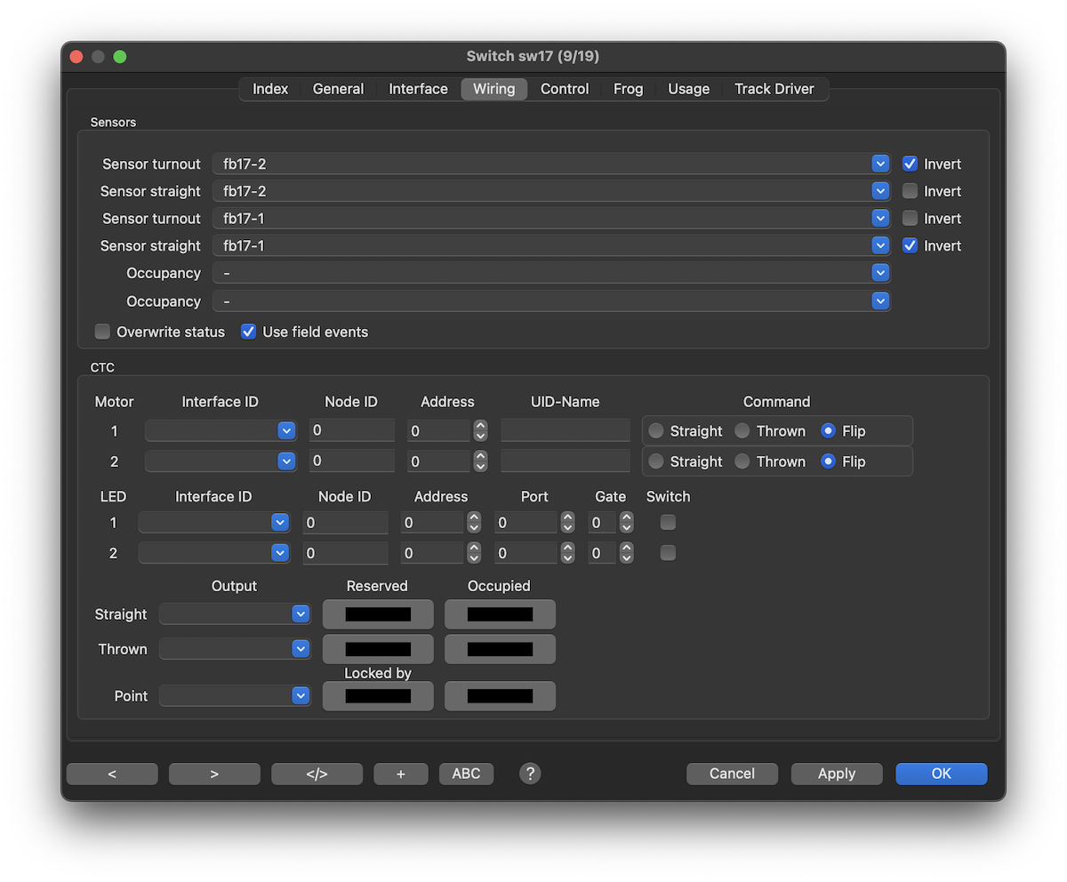 Gebruik de opdracht Init Field na het starten van Rocrail of schakel het wissel handmatig.