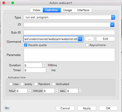 The action calls an external Capture Script for capturing a new snapshot image from the WebCam.
