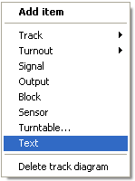 Rocrail offers the possibility in the context menu to place text elements in the track plan, which describe for example other elements in the plan: