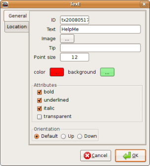 | Point size | You can change with this attribute the font size of the text. | 0 (default) means the standard value of the operating system. |