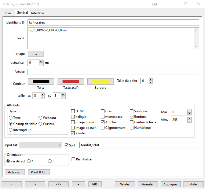 La longueur du champ texte doit être assez longue pour contenir le train le plus long.