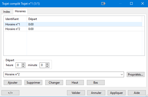 Note: Les horaires doivent être définis avant de mettre en place des trajets.