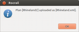 In this dialog you have to choose the track diagram what hast to been uploaded. After click on "Open" the file will be copied to the working directory of the rocrail server under its used name. After click at the "open" Button the file will be saved in the working directory of the rocrail server with it's normal name. An Info window appears what affirmed the action.