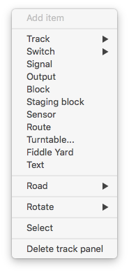This menu item is only provided if the track plan is in the "Edit" mode.