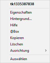 - Eigenschaften: Hier erhält man den Eigenschaften-Dialog des Objektes