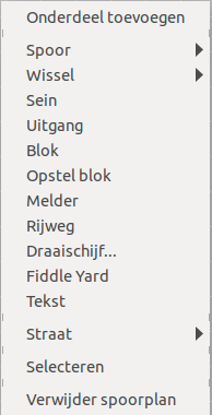 Na het maken van een spoor onderdeel zijn de eigenschappen te wijzigen in het context menu (Rechter muisknop).