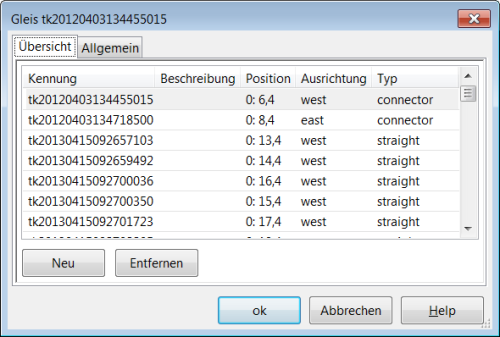 Erzeugt ein neues gerades Gleis an Position 0: 0,0 (z: x,y).