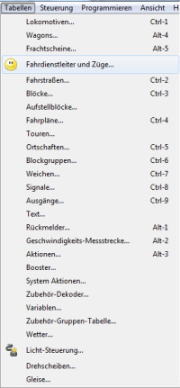 - Die Zug-Tabelle öffnen (Menü Tabellen →