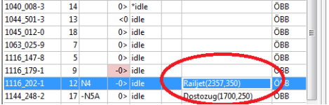 - The assigned train of the respective locomotive can now be seen in the column "train" in the locomotive table